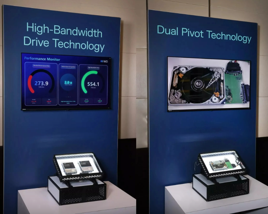 Song song với việc tăng băng thông, Western Digital giới thiệu Dual Pivot Technology. Khác với các nỗ lực 'Dual-actuator' (bộ truyền động kép) trong quá khứ thường phải hy sinh mật độ lưu trữ, công nghệ mới sử dụng hai cánh tay đòn độc lập trên hai trục xoay riêng biệt.