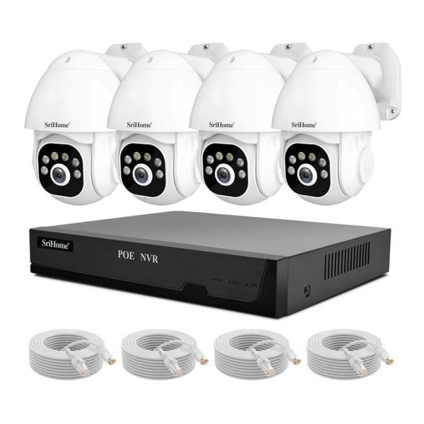Bộ SriHome NVS005-PoE039 là hệ thống NVR PoE 4 kênh 5MP, bao gồm camera PTZ 5MP có thể theo dõi con người AI, báo động còi và đàm thoại hai chiều, giúp giám sát toàn diện khu vực nhà ở, cửa hàng hoặc văn phòng.