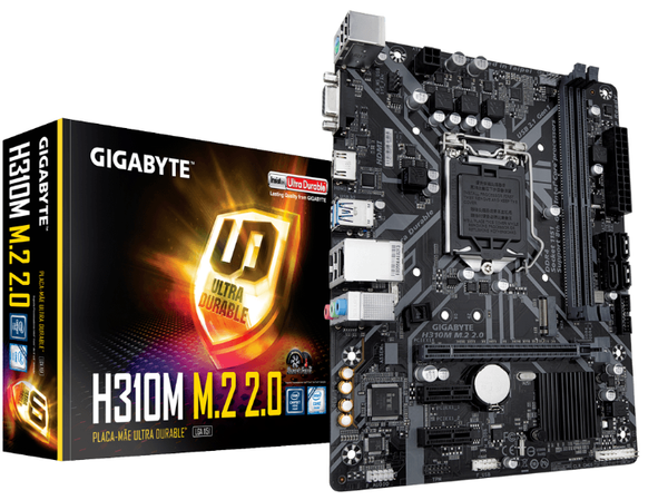 GIGABYTE H310M M.2 2.0 là bo mạch chủ socket 1151v2, hỗ trợ các CPU Intel Core thế hệ thứ 8 và 9. Với thiết kế Micro-ATX nhỏ gọn, tích hợp khe M.2 tốc độ cao, cùng linh kiện bền bỉ chuẩn Ultra Durable, đây là lựa chọn lý tưởng cho các bộ PC phổ thông, văn phòng và gaming tầm trung.