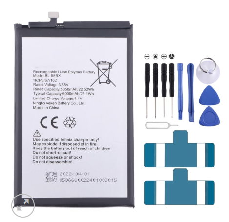 Pin Infinix Hot 9 Play / Hot 10 Play BL-58BX với dung lượng 6000mAh là linh kiện chính hãng, được thiết kế đặc biệt cho các smartphone Infinix Hot 9 Play và Hot 10 Play. Sản phẩm này mang lại nguồn điện dồi dào, giúp bạn sử dụng thiết bị một cách thoải mái suốt cả ngày.