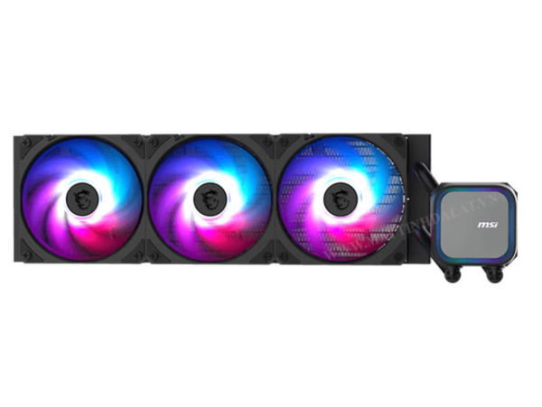 Quạt ARGB Tĩnh Áp cao: Ba quạt 120mm đi kèm Radiator được trang bị đèn ARGB (Addressable RGB) rực rỡ, dễ dàng đồng bộ với hệ sinh thái MSI Mystic Light. Các quạt này được tối ưu hóa để tạo ra áp suất tĩnh cao, giúp đẩy không khí đi xuyên qua các lá tản nhiệt dày của Radiator một cách hiệu quả, không chỉ đẹp mà còn mạnh mẽ.