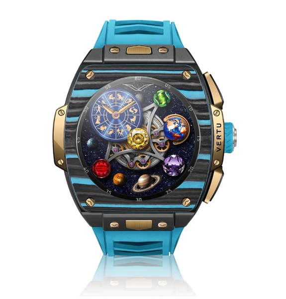 Trung tâm bảo hành Viện Máy Tính xin trân trọng giới thiệu đến quý khách hàng dòng sản phẩm đồng hồ thông minh đỉnh cao của Vertu – VERTU Watch S1 Finished Set Bespoke Gold Black and Blue Carbon Fiber Light Blue Strap.